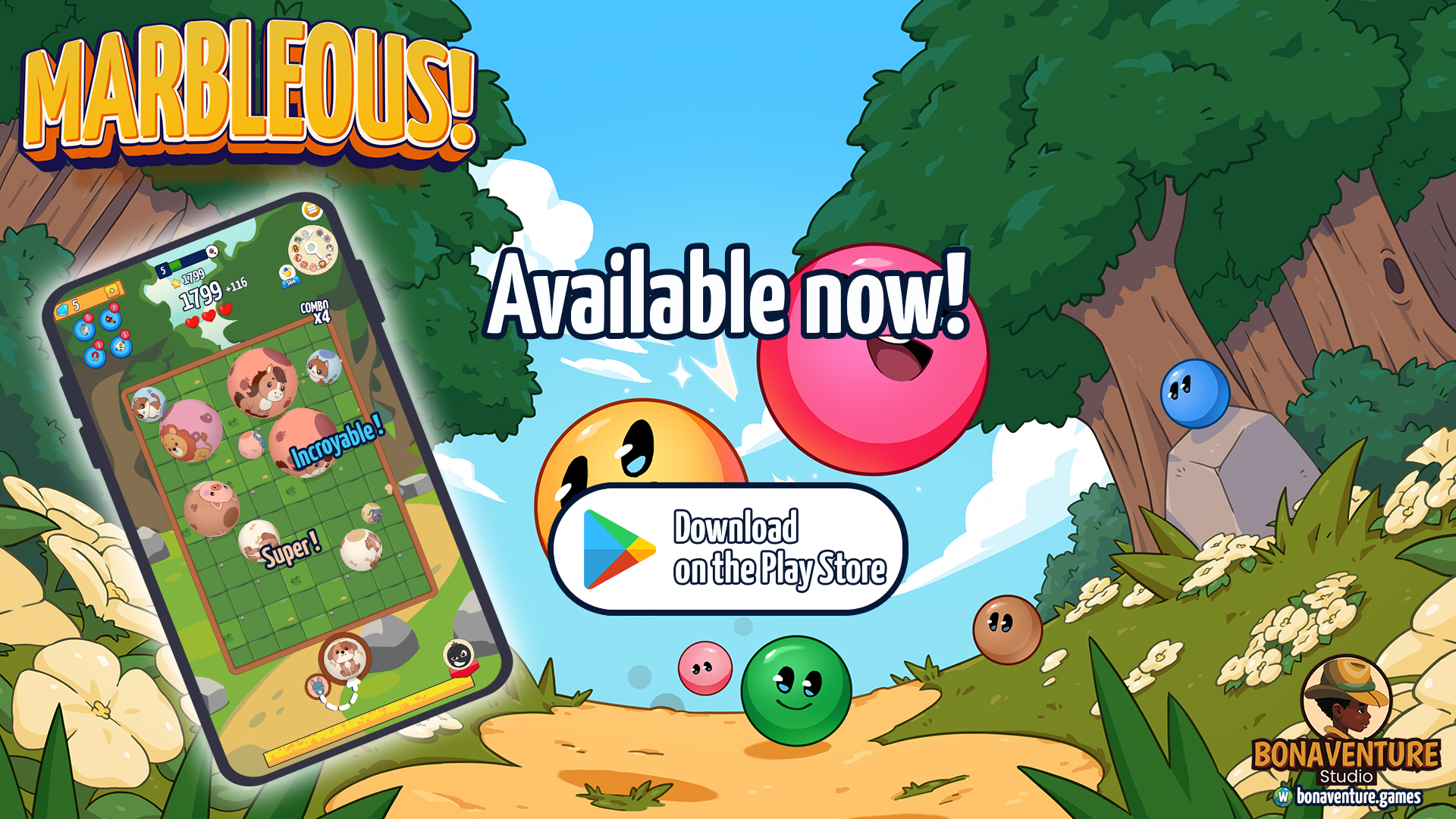 Quick reminder: Marbleous! is a cute and addictive scoring game where you launch marbles, merge them, and climb the leaderboard. Compare your score with friends—or the whole world! \o/